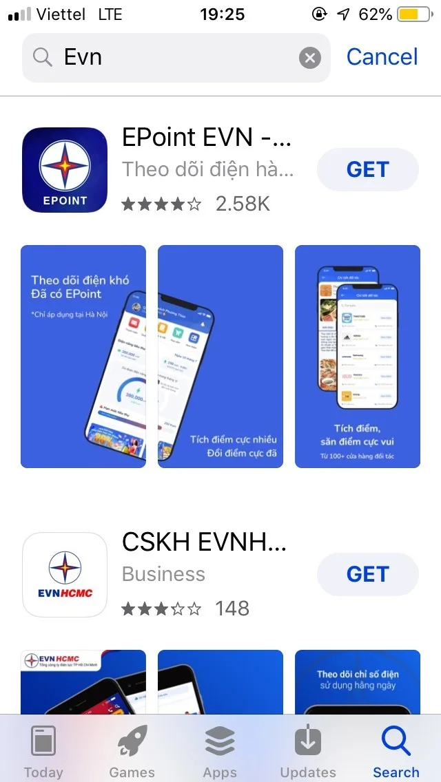 Tra cứu trên ứng dụng của EVN