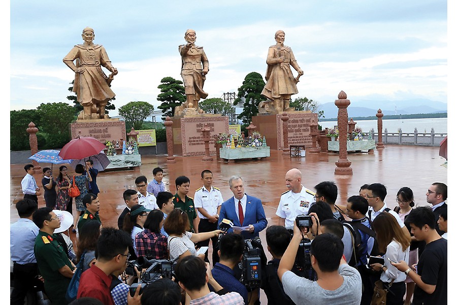 Khách nước ngoài đến tham quan và dâng hương tại Khu di tích Bạch Đằng Giang. Ảnh: Duy Thính