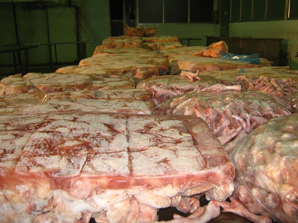 Tại các gian phía trong, một số công nhân đang dùng các cây thép dạng “gọng gà” bẩy từng tảng thịt lợn, thịt gà đông lạnh ra chờ rã đông. Khi được hỏi, công nhân thật thà nói: “Vì tiêu thụ chậm, nên cty giết mổ một loạt, cấp đông chờ bao giờ bán hết thì làm tiếp.!?”. Chuyện ở một cơ sở được coi là mô hình “sạch tiêu biểu” còn như vậy, nói gì đến nơi khác.