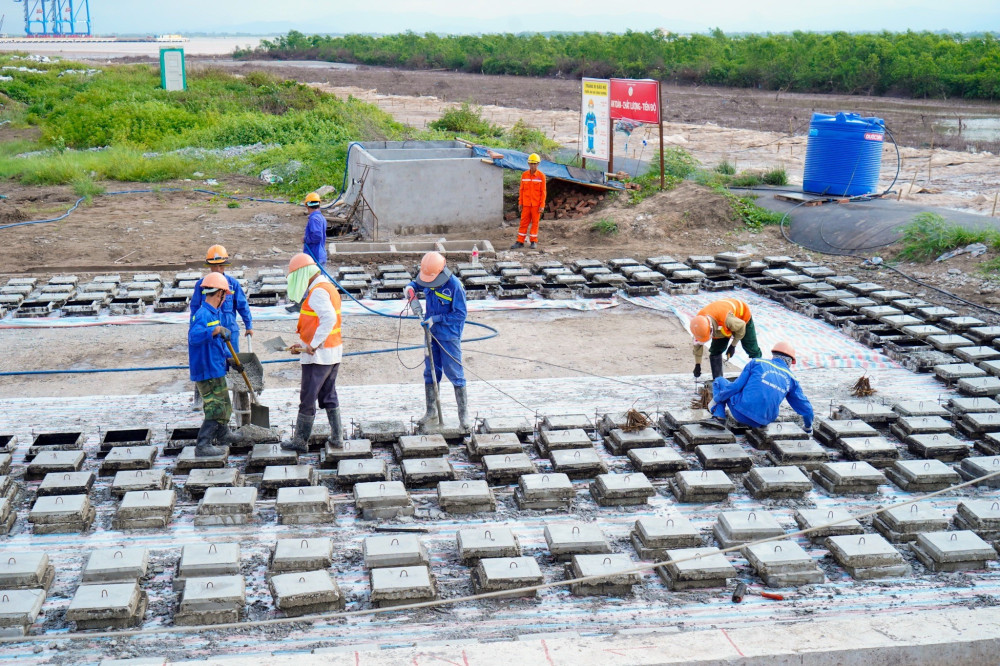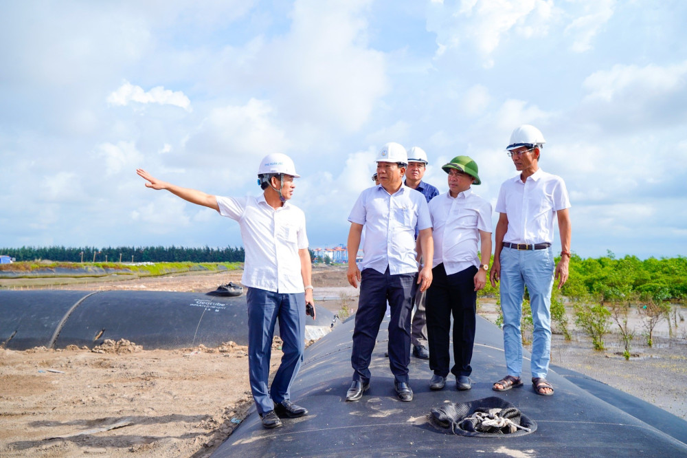 Về phương án phòng chống thiên tai, do đây là công trình lấn biển lớn vì vậy đối với các đoạn đê tiếp giáp với mặt biển, BQL Dự án đã tổ chức thi công tuyến đê bao Geotube và san lấp nền đê, dùng bạt HDPE chống xói rải trên mặt đê từ ngoài vào trong, xếp 03 hàng bao tải cát…