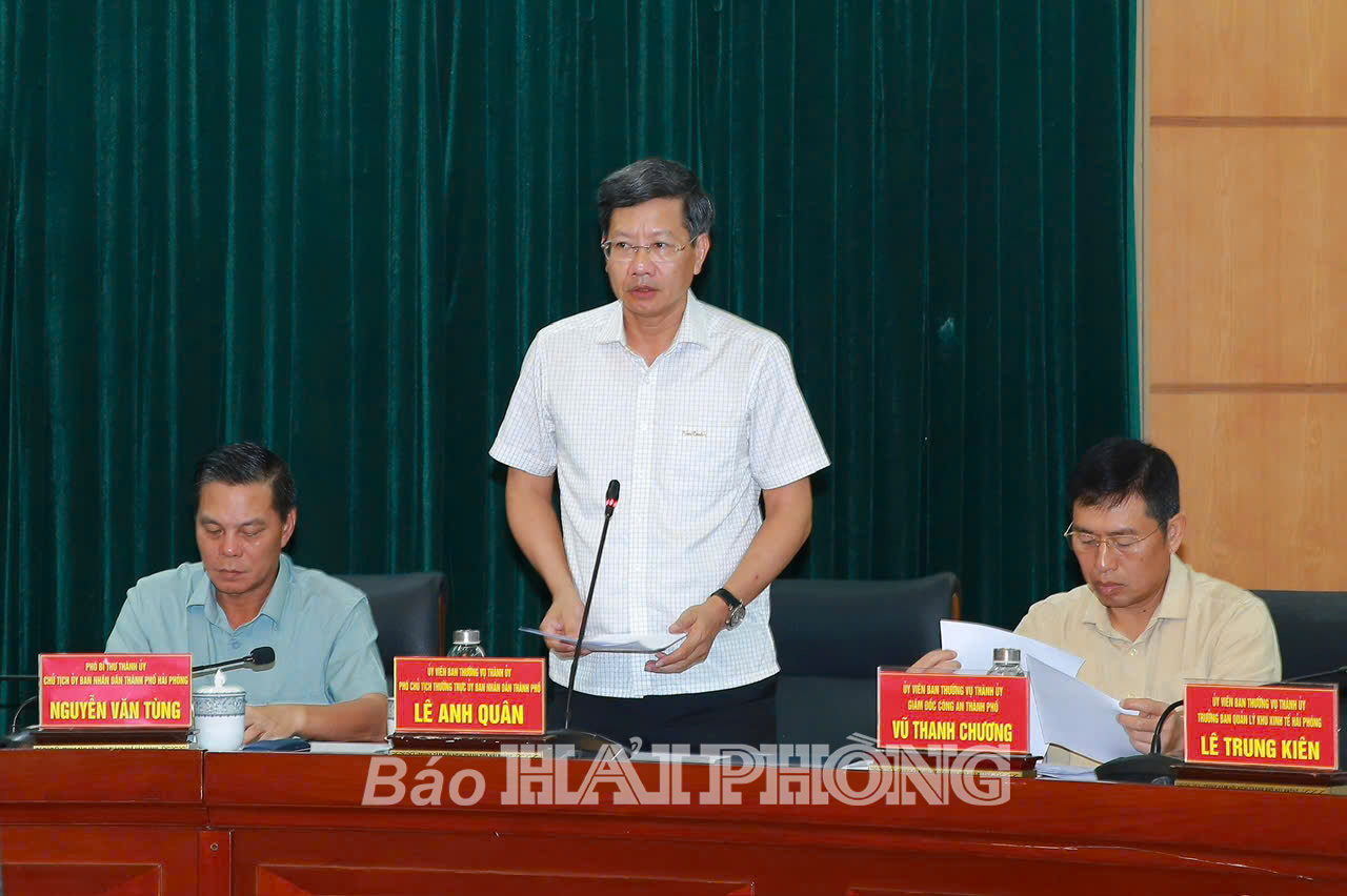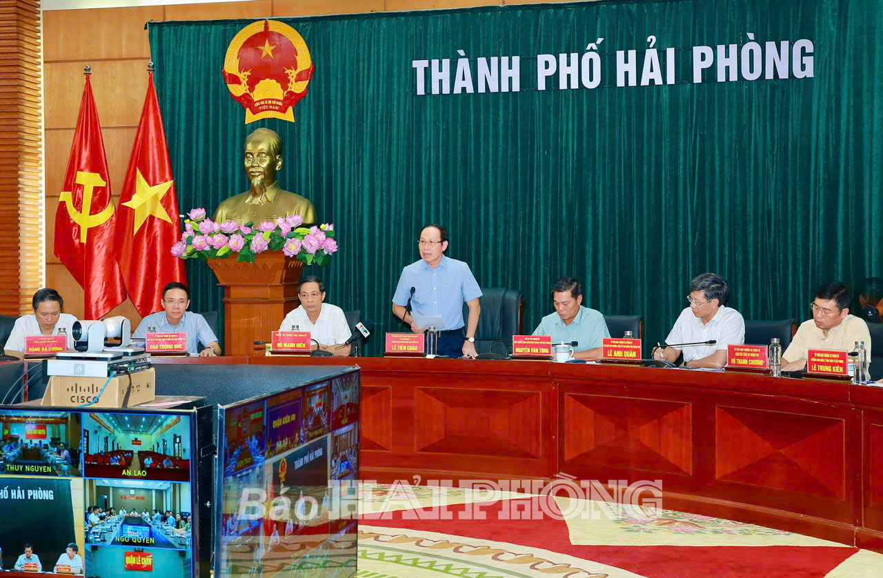 Đồng chí Lê Tiến Châu, Ủy viên Trung ương Đảng, Bí thư Thành ủy, Trưởng Đoàn đại biểu Quốc hội Hải Phòng chủ trì cuộc họp. Cuộc họp được kết nối trực tuyến tới các điểm cầu quận, huyện trên địa bàn thành phố.