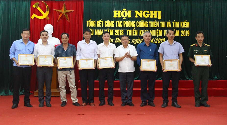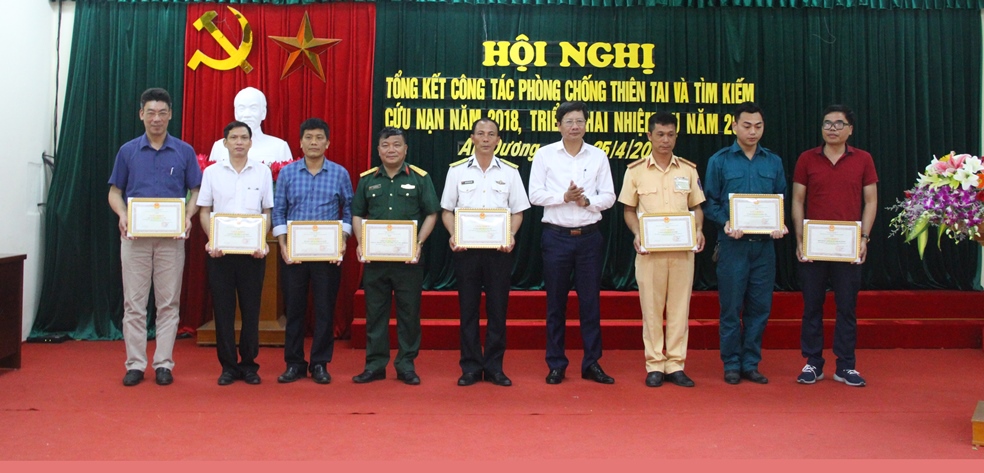Nhân dịp này, UBND huyện An Dương biểu dương khen thưởng 8 tập thể, 11 cá nhân có thành tích xuất sắc trong công tác PCTT-TKCN năm 2018.