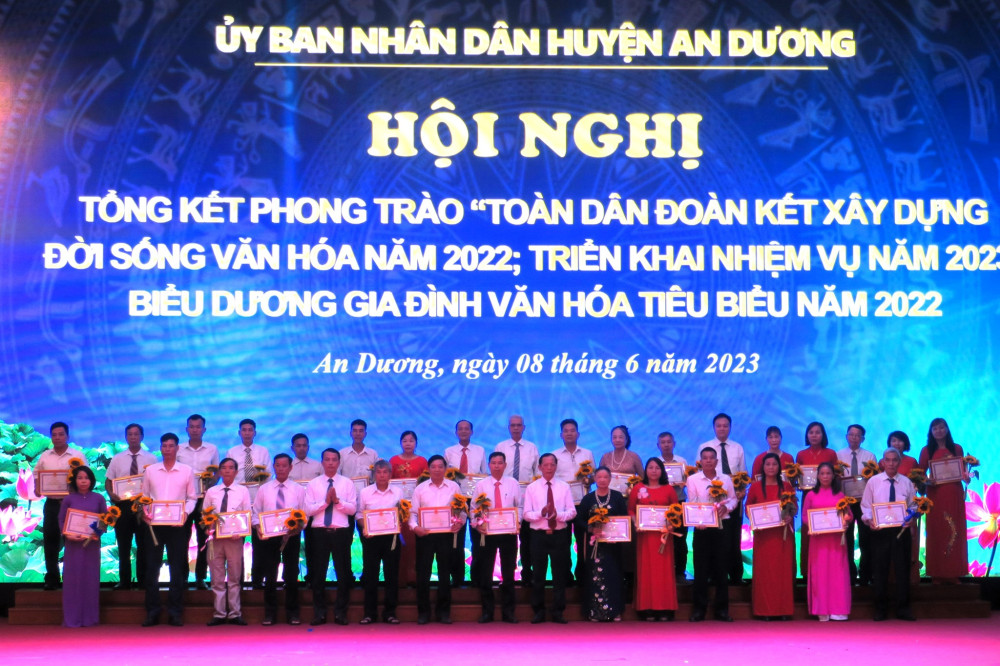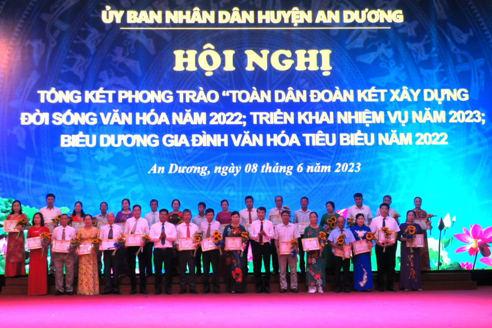 Hằng năm, Ban Chỉ đạo Phong trào “Toàn dân đoàn kết xây dựng đời sống văn hóa” huyện An Dương đã xây dựng kế hoạch, hướng dẫn cơ sở tổ chức bình xét và công nhận danh hiệu gia đình văn hóa theo các tiêu chí công nhận danh hiệu gia đình văn hóa; vận động hộ gia đình đăng ký xây dựng gia đình văn hóa. Đồng thời, tích cực triển khai nhiều biện pháp tuyên truyền lồng ghép với các nội dung sinh hoạt văn hóa văn nghệ, phong trào xây dựng nông thôn mới, xây dựng nông thôn mới kiểu mẫu, xây dựng đời sống văn hóa ở khu dân cư.