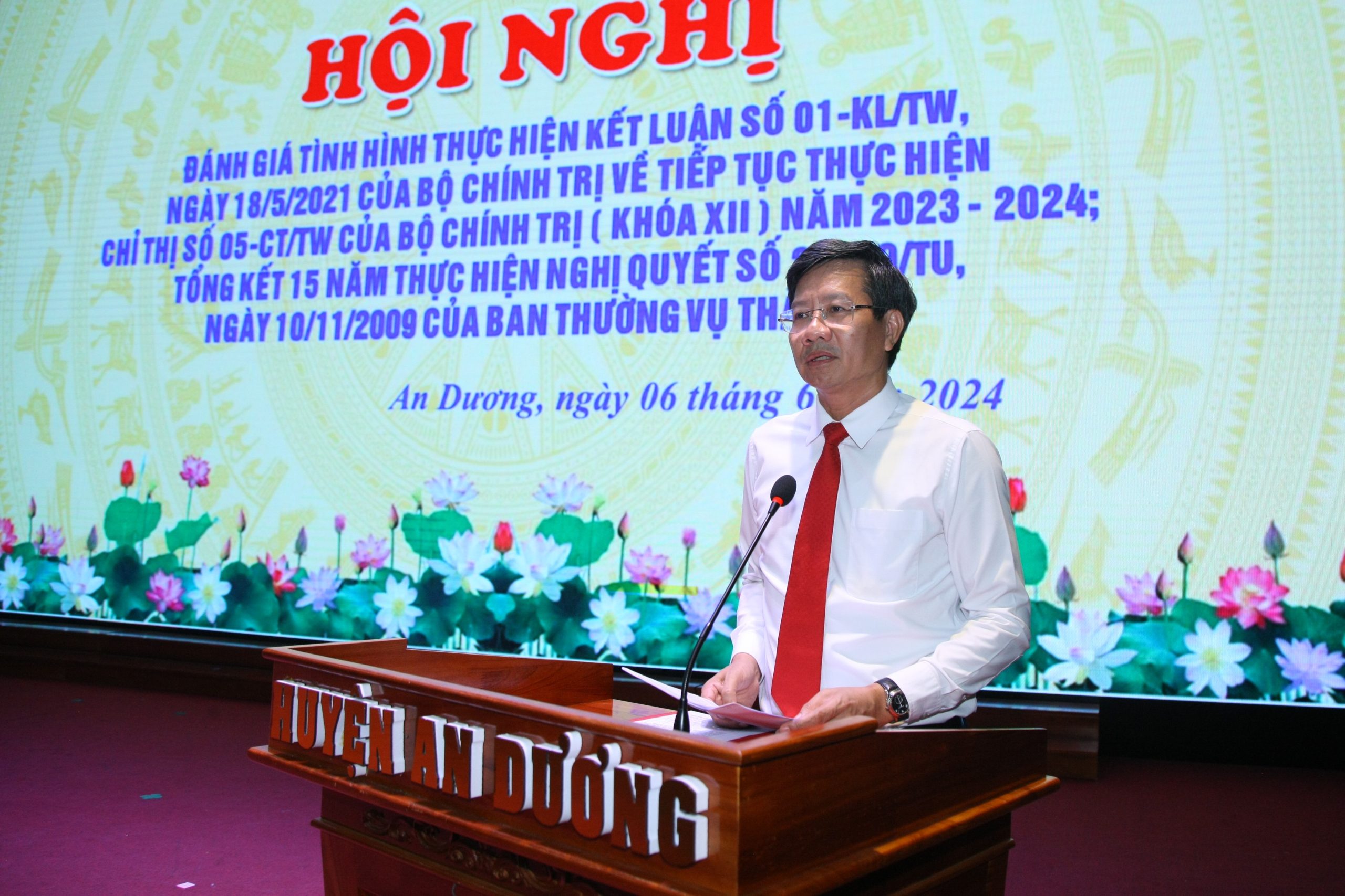Chiều 6/6, Huyện ủy An Dương tổ chức Hội nghị đánh giá tình hình thực hiện Kết luận số 01-KL/TW ngày 18/5/2021 của Bộ Chính trị về tiếp tục thực hiện Chỉ thị số 05-CT/TW của Bộ Chính trị (Khóa XII) về đẩy mạnh học tập và làm theo tư tưởng, đạo đức, phong cách Hồ Chí Minh năm 2023-2024; Tổng kết 15 năm thực hiện Nghị quyết số 28-NQ/TU ngày 10/11/2009 của Ban Thường vụ Thành ủy về xây dựng, củng cố và phát triển tổ chức đảng, đoàn thể trong các loại hình doanh nghiệp ngoài nhà nước, hợp tác xã, đơn vị sự nghiệp ngoài công lập.