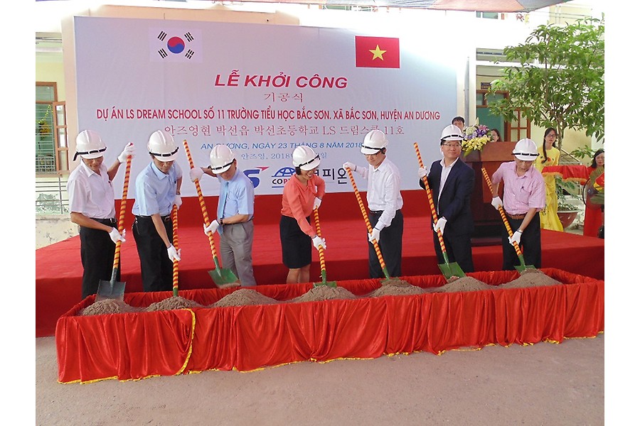 Sáng 23-8, UBND huyện An Dương phối hợp Sở Ngoại vụ, Tổ chức COPION Hàn Quốc tổ chức khởi công Dự án LS Dream School số 11 Trường tiểu học Bắc Sơn, xã Bắc Sơn. Dự án do Tổ chức COPION Hàn Quốc tài trợ có tổng mức đầu tư 1,7 tỷ đồng, xây dựng nhà đa năng rộng hơn 200 m2. Đến dự có Tổng giám đốc đại diện Tập đoàn LS Hải Phòng Baek In Jae; Trưởng đại diện COPION Hàn Quốc tại Việt Nam Kim Jae Chul; lãnh đạo Sở Ngoại vụ thành phố, huyện An Dương.