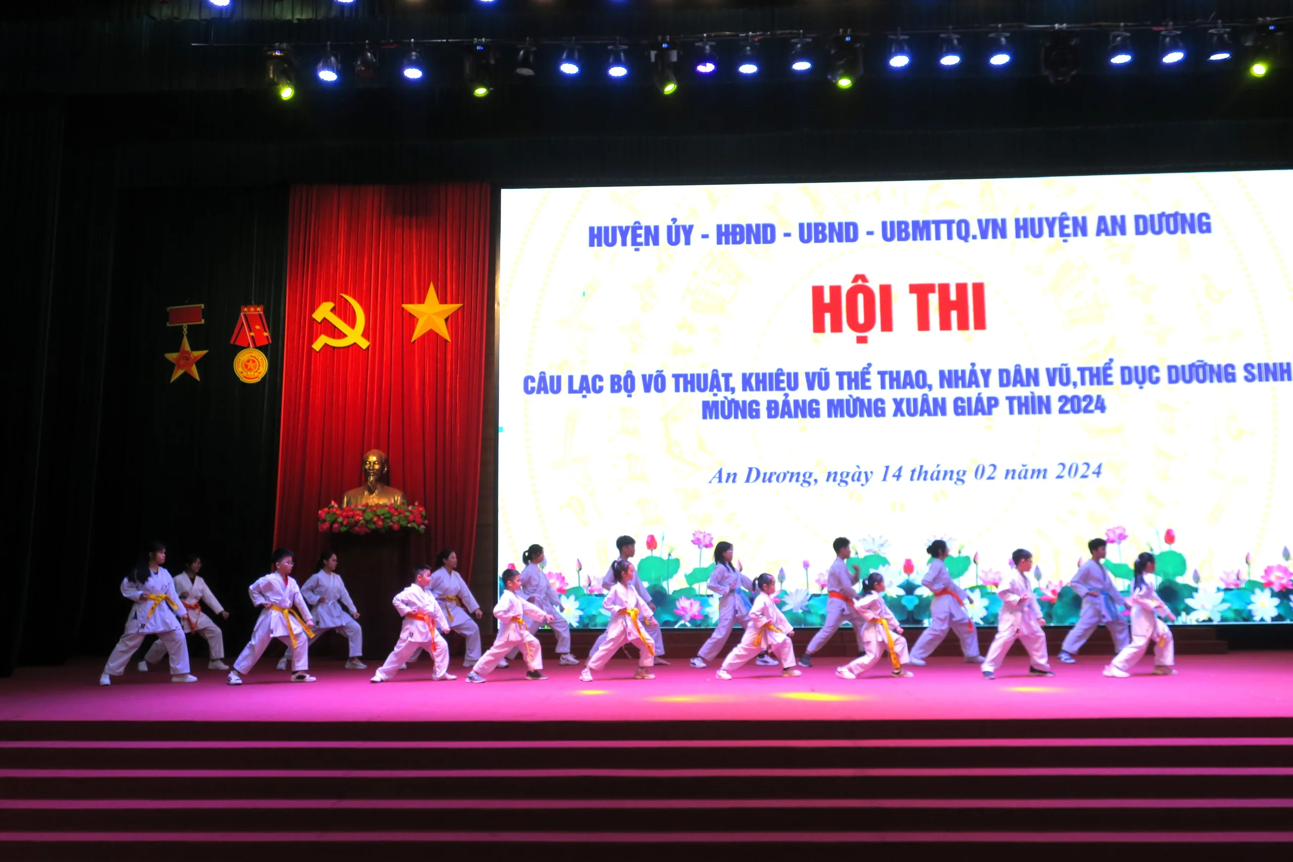 Sáng 14/2 (tức mùng 5 Tết Nguyên đán Giáp Thìn), huyện An Dương tổ chức Hội thi văn nghệ, câu lạc bộ võ thuật, khiêu vũ thể thao, nhảy dân vũ, thể dục dưỡng sinh mừng Đảng, mừng Xuân Giáp Thìn 2024.