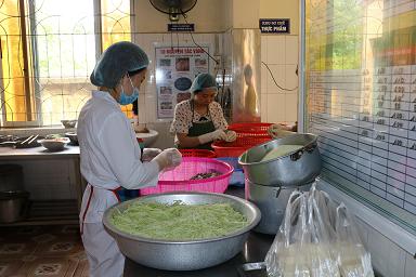 Để cung cấp nguồn thực phẩm an toàn cho bếp ăn bán trú của nhà trường, theo cô giáo Lê Thị Cúc, Phó Hiệu trưởng Trường mầm non xã Quốc Tuấn: “Đối với các thực phẩm chế biến phục vụ bữa ăn cho trẻ đều đảm bảo tươi sống; rau củ quả trước khi chế biến được ngâm vào nước muối loãng.
