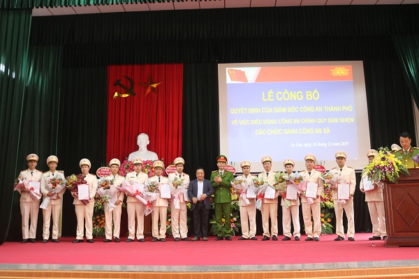 Sáng 26-12, huyện An Lão tổ chức lễ công bố Quyết định của Giám đốc CATP về việc điều động cán bộ đảm nhiệm chức danh Công an các xã trên địa bàn huyện. Đến dự có các đồng chí: Vũ Duy Tùng – Bí thư Huyện ủy, Chủ tịch UBND huyện; Đại tá Phạm Viết Dũng – Phó Giám đốc CATP và lãnh đạo các phòng chức năng CATP.