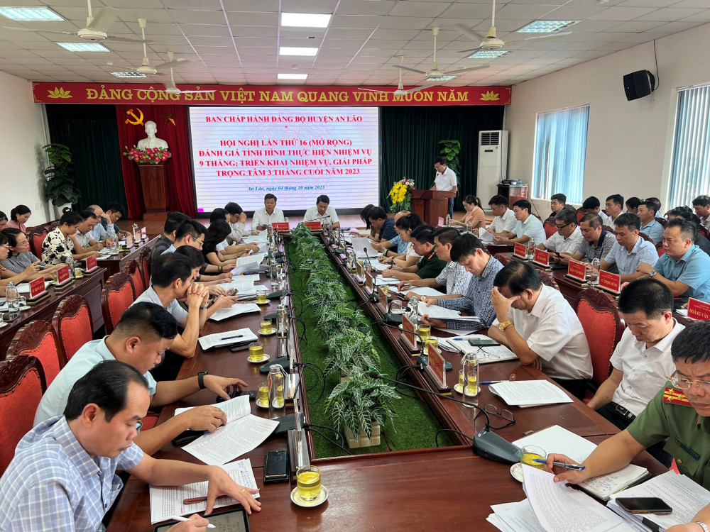 Chiều 04/10, Ban Chấp hành Đảng bộ huyện An Lão tổ chức Hội nghị lần thứ 16 (mở rộng) đánh giá tình hình thực hiện nhiệm vụ 9 tháng, bàn giải pháp trọng tâm 3 tháng cuối năm 2023.