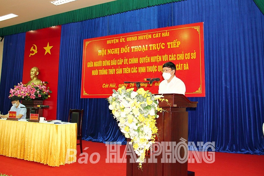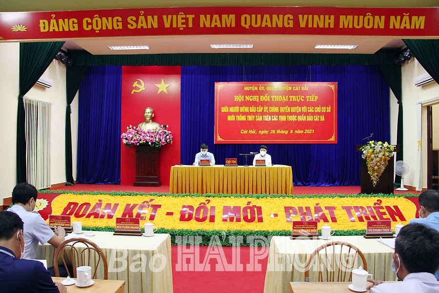 Sáng 26/8, Huyện ủy, UBND huyện Cát Hải tổ chức hội nghị đối thoại trực tiếp giữa người đứng đầu cấp ủy Đảng, chính quyền với các chủ cơ sở nuôi trồng thủy sản trên các vịnh thuộc quần đảo Cát Bà.