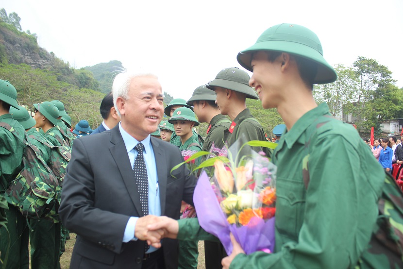 Phó Chủ tịch UBND TP Nguyễn Đình Chuyến tặng hoa, động viên các thanh niên lên đường nhập ngũ