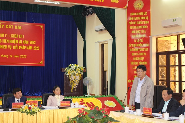 Phát biểu tại hội nghị, Phó Trưởng ban Thường trực Ban Tuyên giáo Thành ủy Dương Ngọc Tuấn biểu dương những kết quả mà huyện Cát Hải đã đạt được trong thực hiện nhiệm vụ kinh tế-xã hội, quốc phòng-an ninh năm 2022…