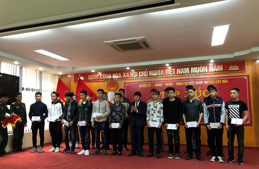 Để thể hiện ý chí, quyết tâm của tuổi trẻ huyện Cát Hải sẵn sàng lên đường nhập ngũ, thực hiện nghĩa vụ thiêng liêng với tổ quốc. Công dân Hoàng Đình Lâm – đại diện cho 45 thanh niên chuẩn bị nhập ngũ – đã phát biểu cảm ơn sự quan tâm của cấp ủy Đảng, chính quyền, các ban, ngành, tổ chức đoàn thể và nhân dân địa phương trong thời gian qua, hứa quyết tâm nêu cao ý thức và trách nhiệm của mình trong sự nghiệp xây dựng và bảo vệ Tổ quốc.