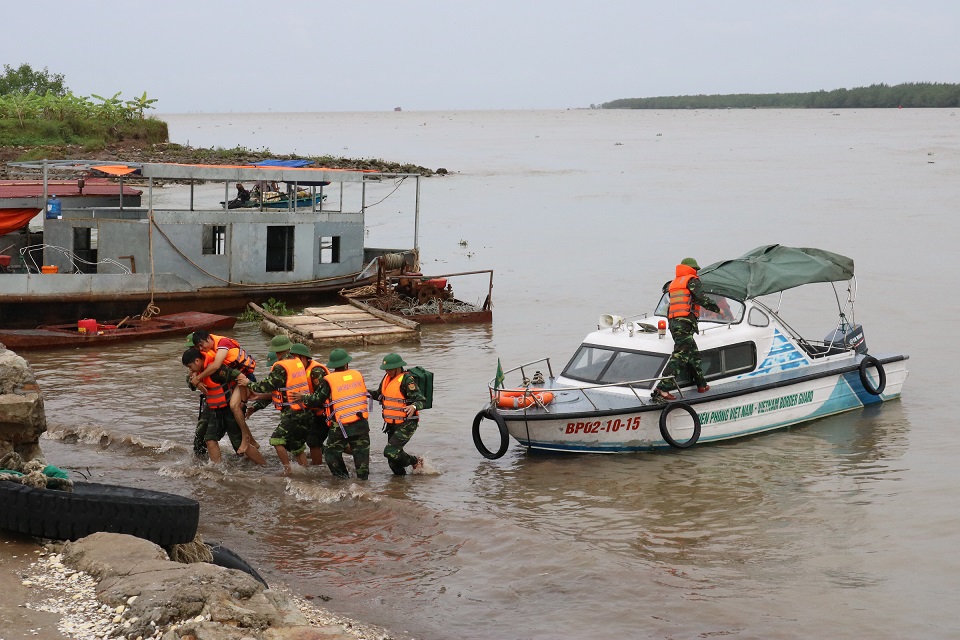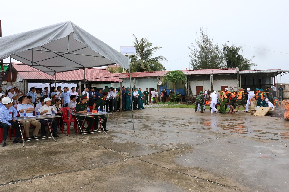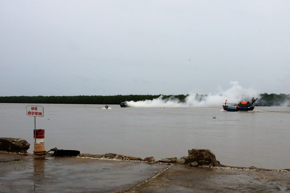 Tình huống giả định, cơn bão số 1 gây mưa giông và gió giật mạnh trên cấp 12 đe dọa ảnh hưởng nghiêm trọng đến các tuyến đê ven sông, ven biển, cùng các chòi nuôi ngao và các phương tiện tàu thuyền vào tránh trú bão.