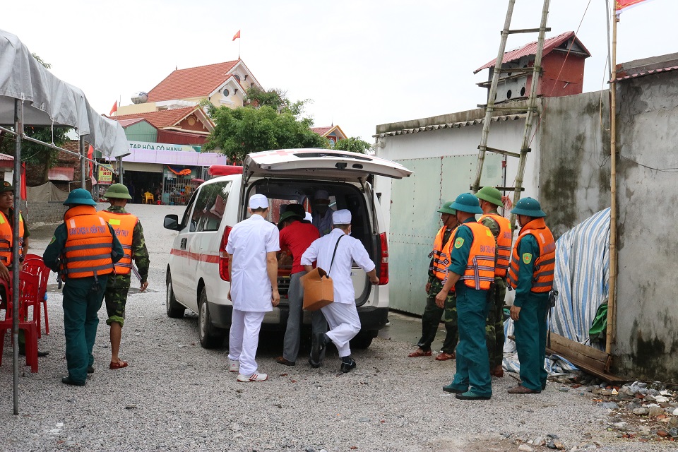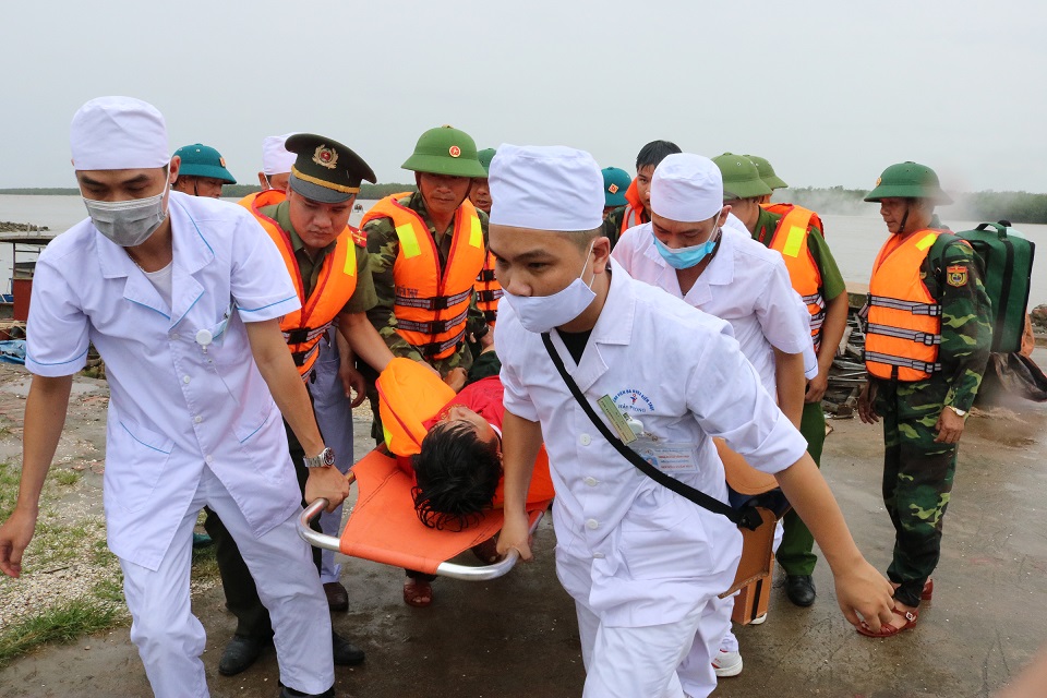 Ban Chỉ huy PCTT và TKCN huyện nhận được tin báo của Đồn Biên phòng Đoàn Xá, có 3 lao động trên 2 chòi canh ngao không thể vào bờ do nước dâng cao, sóng lớn, trong đó 1 người bị thương do chòi đổ. Cùng lúc đó 1 tàu cá khi di chuyển vào bờ trú bão đã bị chập điện gây cháy, chết máy trôi dạt, 2 ngư dân bị sóng hất xuống sông.