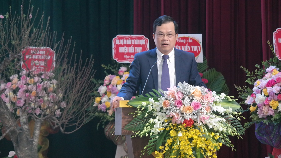 Phát biểu tại buổi lễ, đồng chí Nguyễn Đức Thọ, Phó Chủ tịch UBND thành phố chúc mừng những kết quả Đảng bộ, chính quyền và Nhân dân huyện Kiến Thụy đã đạt được trong 10 năm thực hiện Chương trình mục tiêu Quốc gia xây dựng NTM. Đồng chí Phó Chủ tịch UBND thành phố lưu ý huyện Kiến Thụy cần tiếp tục duy trì các tiêu chí NTM đã đạt được, đồng thời cả hệ thống chính trị cần chung sức đồng lòng tiếp tục thực hiện xây dựng NTM kiểu mẫu…