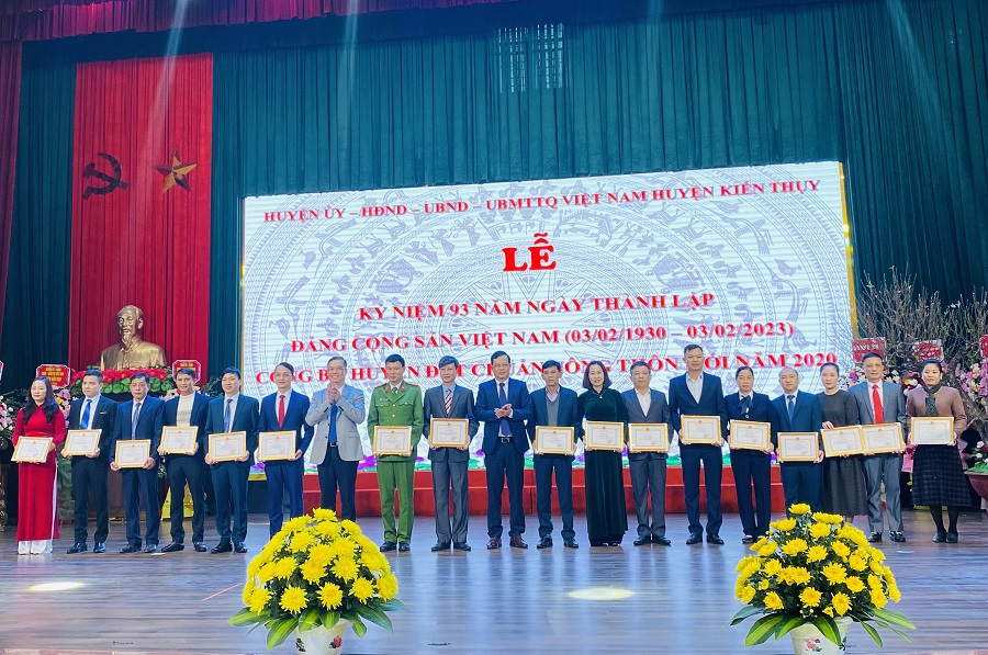 Sáng 10/1, Huyện ủy, HĐND, UBND, UBMTTQ Việt Nam huyện Kiến Thụy long trọng tổ chức Lễ kỷ niệm 93 năm ngày thành lập Đảng Cộng sản Việt Nam (3/2/1930-3/2/2023) và công bố Quyết định của Thủ tướng Chính phủ công nhận huyện Kiến Thụy đạt chuẩn nông thôn mới (NTM) năm 2020.