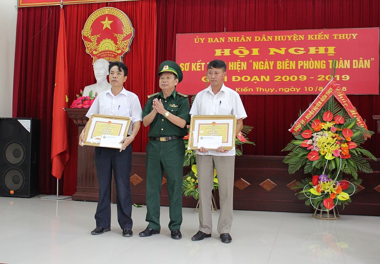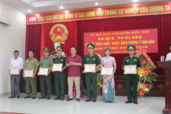 UBND huyện Kiến Thụy trao giấy khen tặng các tập thể, cá nhân có thành tích xuất sắc trong 10 năm thực hiện “Ngày biên phòng toàn dân”.