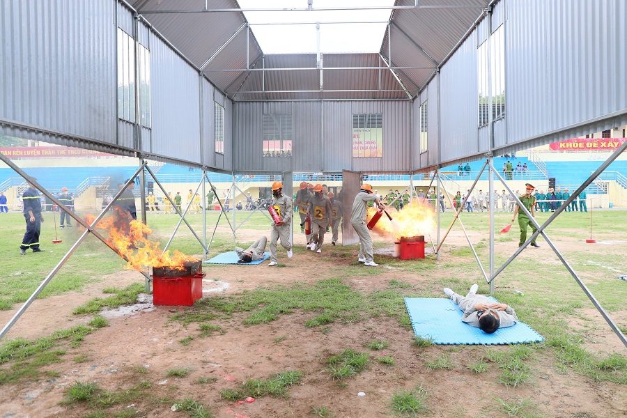 Tham gia Hội thi có 11 Tổ liên gia an toàn phòng cháy chữa cháy trên địa bàn các xã, thị trấn. Các đội thi trải qua 2 phần thi lý thuyết và thực hành với các nội dung được xây dựng sát với thực tiễn hoạt động của Tổ liên gia an toàn phòng cháy, chữa cháy. Qua đó, góp phần bổ sung, nâng cao kiến thức, năng lực, kỹ năng xử lý tình huống cháy, nổ, cứu người, cứu tài sản cho các thành viên trong các hộ gia đình thuộc Tổ liên gia, đưa hoạt động của các Tổ liên gia đi vào thực chất, phát huy hiệu quả phương châm “bốn tại chỗ”, gồm: chỉ huy tại chỗ, lực lượng tại chỗ, phương tiện tại chỗ, hậu cần tại chỗ.