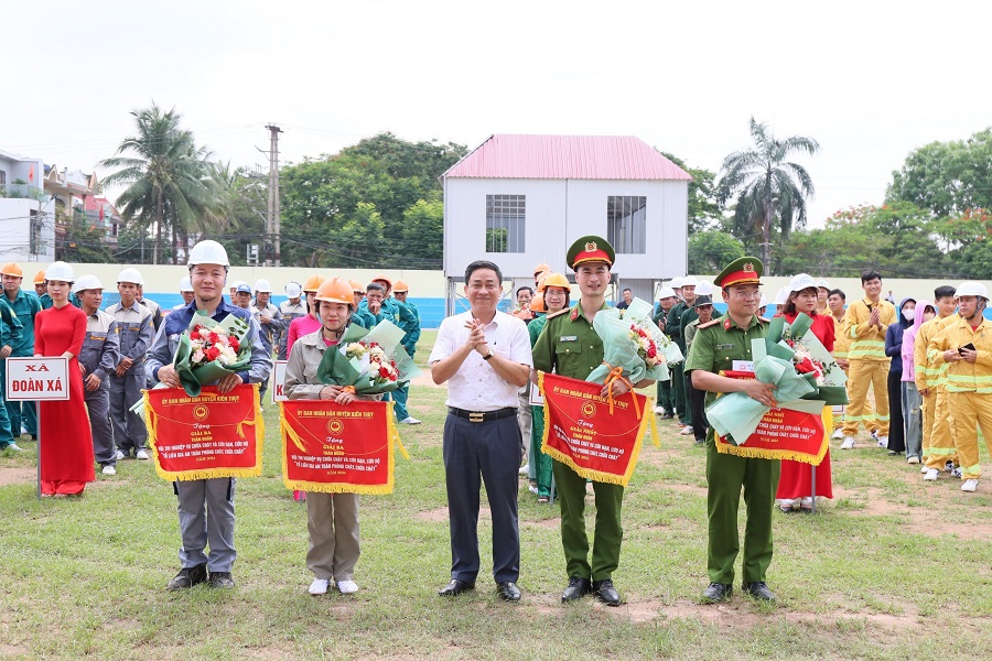 Phát biểu tại Hội thi, đồng chí Lưu Văn Thụy, Phó Chủ tịch Thường trực UBND huyện cho biết: hiện nay trên địa bàn huyện Kiến Thụy có nhiều cơ sở sản xuất, nhà ở kết hợp sản xuất kinh doanh, tiềm ẩn nguy cơ mất an toàn về phòng cháy chữa cháy cao. Chính vì vậy, trong nhiều năm qua, Huyện ủy – HĐND – UBND huyện luôn xác định công tác phòng cháy, chữa cháy và cứu nạn, cứu hộ là một trong những nhiệm vụ trọng tâm để lãnh đạo, chỉ đạo, huy động sự vào cuộc của cả hệ thống chính trị cũng như toàn dân tích cực tham gia đảm bảo an toàn phòng cháy chữa cháy.