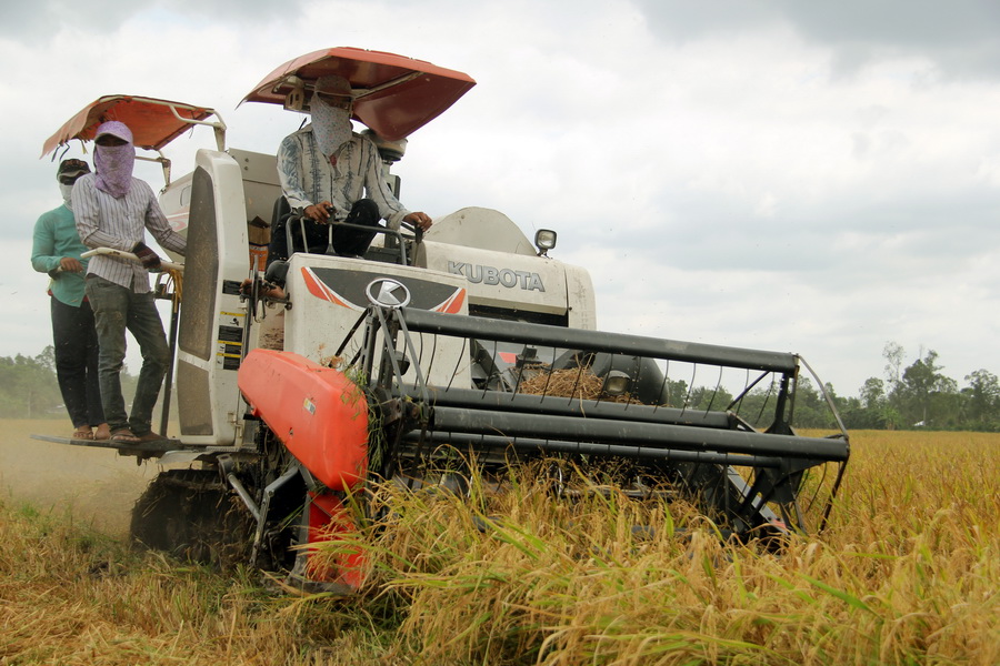 Bà con nông dân sử dụng máy nông cụ để đẩy nhanh tiến độ thu hoạch