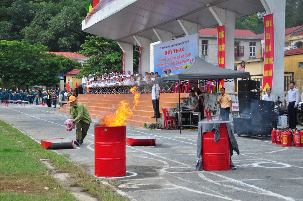 Tham gia hội thao, 18 đội tuyển các xã và thị trấn phải vượt qua 2 môn thi, gồm: nội dung thi cá nhân chạy 10Om vượt chướng ngại vật dùng chăn chiên dập tắt thùng phuy xăng cháy và chạy tiếp xúc 4 x100m cứu người, cứu tài sản và chữa cháy.