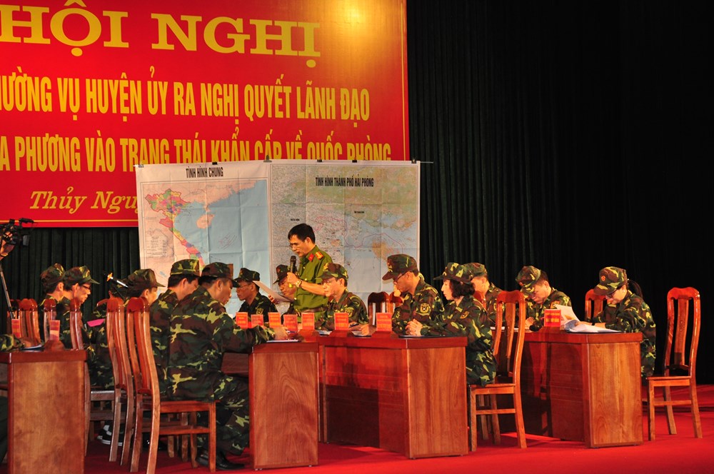 Cuộc diễn tập khu vực phòng thủ huyện Thủy Nguyên có đề mục: “Chuyển lực lượng vũ trang vào các trạng thái sẵn sàng chiến đấu; chuyển địa phương vào các trạng thái khẩn cấp về quốc phòng; tổ chức chuẩn bị và thực hành tác chiến”.