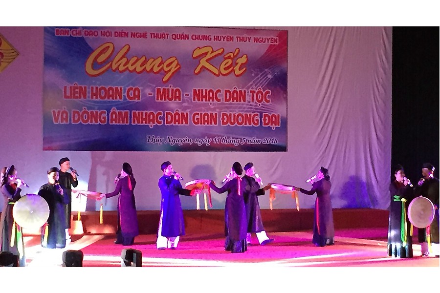 Tối 11-5, huyện Thủy Nguyên tổ chức chung kết liên hoan ca, múa, nhạc dân tộc và dân gian đương đại các xã, thị trấn năm 2018 tại Trung tâm văn hóa Thông tin huyện ở thị trấn Núi Đèo.