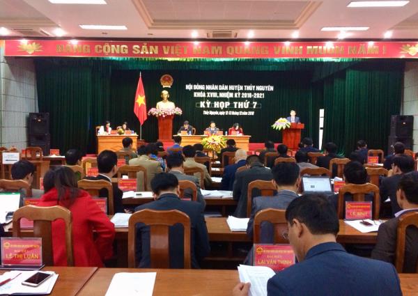 Kỳ họp thứ 7 HĐND huyện Thủy Nguyên sẽ diễn ra trong 2 ngày, từ 12-13/12/2018. Các đại biểu sẽ nghe và thảo luận báo cáo của UBND huyện và các cơ quan chức năng về kết quả kinh tế – xã hội năm 2018; kế hoạch phát triển kinh tế – xã hội năm 2019; dự toán phân bổ ngân sách và kế hoạch đầu tư công năm 2019. Xem xét cho ý kiến các báo cáo về tình hình hoạt động của HĐND huyện năm 2018 và chương trình công tác trọng tâm năm 2019; công tác giải quyết đơn thư khiếu nại, tố cáo, phòng chống tội phạm trật tự an toàn xã hội, kết quả giải quyết kiến nghị cử tri. Lấy phiếu tín nhiệm đối với người giữ các chức vụ do HĐND huyện bầu. Chất vấn và xem xét trả lời chất vấn và thực hiện một số nội dung quan trọng khác theo luật định…