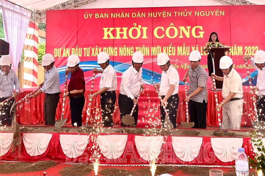 Sáng 19/8, chào mừng kỳ niệm 77 năm Cách mạng tháng Tám và Quốc Khánh (2/9/1945-2/9/2022), UBND huyện Thủy Nguyên khởi công dự án đầu tư xây dựng nông thôn mới (NTM) kiểu mẫu tại các xã Liên Khê và Lưu Kiếm năm 2022.