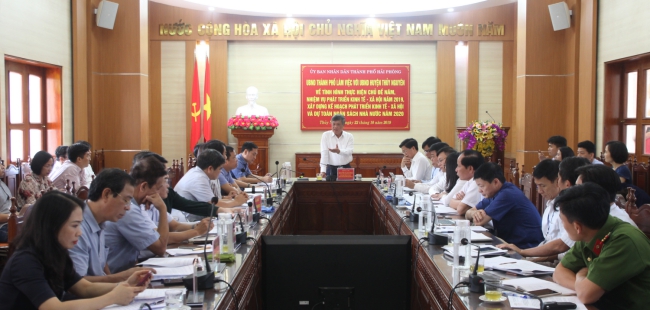 Sáng 22/10, Phó Chủ tịch Thường trực UBND thành phố Nguyễn Xuân Bình làm việc với huyện Thủy Nguyên về tình hình thực hiện Chủ đề năm 2019, kết quả thực hiện kế hoạch phát triển kinh tế – xã hội và dự toán thu – chi ngân sách Nhà nước năm 2019; xây dựng kế hoạch phát triển kinh tế – xã hội và dự toán ngân sách Nhà nước năm 2020. Cùng dự có đại diện lãnh đạo các Sở, ngành, địa phương liên quan.