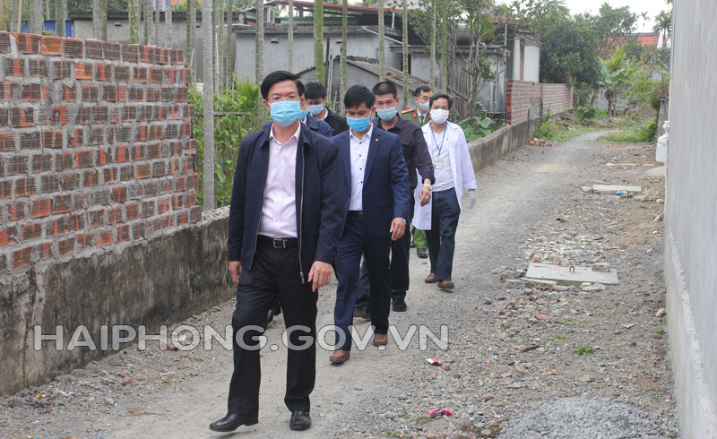 Sáng 23/2, đồng chí Phạm Văn Lập, Ủy viên Ban Thường vụ Thành ủy, Bí thư Huyện ủy Thủy Nguyên đi kiểm tra công tác phòng, chống dịch tại thôn 5, xã Cao Nhân, huyện Thủy Nguyên.