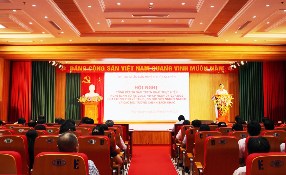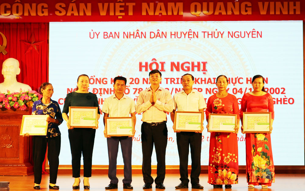 Chiều 22/7, UBND huyện Thủy Nguyên tổ chức Hội nghị tổng kết 20 năm triển khai thực hiện Nghị định số 78/2002/NĐ-CP ngày 04/10/2002 của Chính phủ về tín dụng đối với người nghèo và các đối tượng chính sách khác.