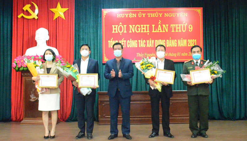Nhân dịp này, Huyện ủy Thủy Nguyên khen thưởng 16 tổ chức cơ sở đảng, 14 cá nhân hoàn thành xuất sắc nhiệm vụ; 11 cá nhân có thành tích xuất sắc trong công tác xây dựng Đảng năm 2021.