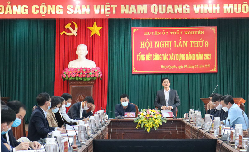 Phát biểu chỉ đạo tại Hội nghị, đồng chí Phạm Văn Lập, Chủ tịch HĐND thành phố biểu dương và đánh giá cao những kết quả Đảng bộ huyện đạt được trong năm 2021. Đồng chí yêu cầu huyện Thủy Nguyên cần chủ động thực hiện các nhiệm vụ ngay từ những ngày đầu năm. Trong đó, tập trung đẩy nhanh tiến độ xây dựng hồ sơ chuyển đổi huyện Thủy Nguyên trở thành thành phố trực thuộc thành phố; rà soát, hoàn thành xây dựng nông thôn kiểu mẫu tại 2 xã Gia Minh, Gia Đức và 5 xã năm 2021, chuẩn bị các điều kiện triển khai tại 8 xã năm 2022 theo kế hoạch của thành phố. Đẩy nhanh công tác giải phóng mặt bằng các dự án trọng điểm trên địa bàn. Nâng cao tính tiền phong, gương mẫu trách nhiệm của cán bộ, đảng viên, người đứng đầu trong quá trình thực hiện nhiệm vụ, góp phần xây dựng huyện Thủy Nguyên ngày càng phát triển.