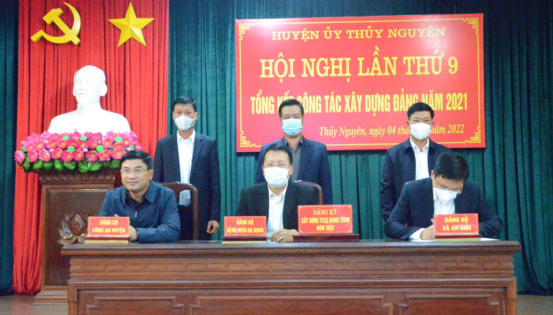 Đại diện khối xã, thị trấn, khối cơ quan hành chính và khối đơn vị sự nghiệp đã ký kết giao ước thi đua xây dựng tổ chức cơ sở Đảng trong sạch vững mạnh năm 2022.