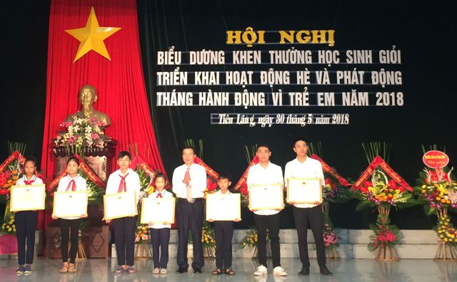 Sáng 30/5, huyện Tiên Lãng tổ chức hội nghị biểu dương, khen thưởng học sinh giỏi năm học 2017 – 2018, triển khai hoạt động hè và phát động tháng hành động Vì trẻ em năm 2018.