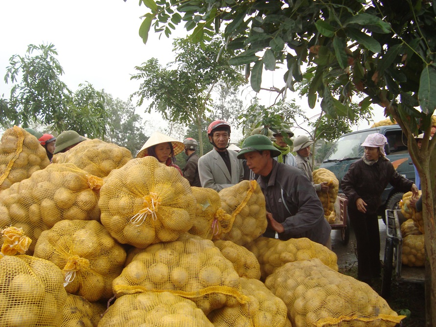 Người dân Tiên Lãng vận chuyển bán khoai tây cho đơn vị thu mua