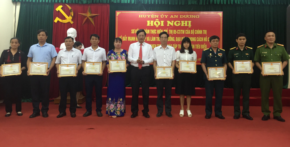 Nhân dịp này, huyện ủy An Dương biểu dương, khen thưởng 41 tập thể và cá nhân có thành tích xuất sắc trong thực hiện Chỉ thị 05 của Bộ Chính trị