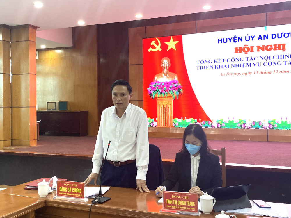 Chiều 15/12, Huyện ủy An Dương tổ chức Hội nghị giao ban khối nội chính tổng kết công tác năm 2021, triển khai nhiệm vụ công tác năm 2022. Dự Hội nghị có đồng chí Đặng Bá Cường, Ủy viên Ban Thường vụ, Trưởng Ban Nội chính Thành ủy.