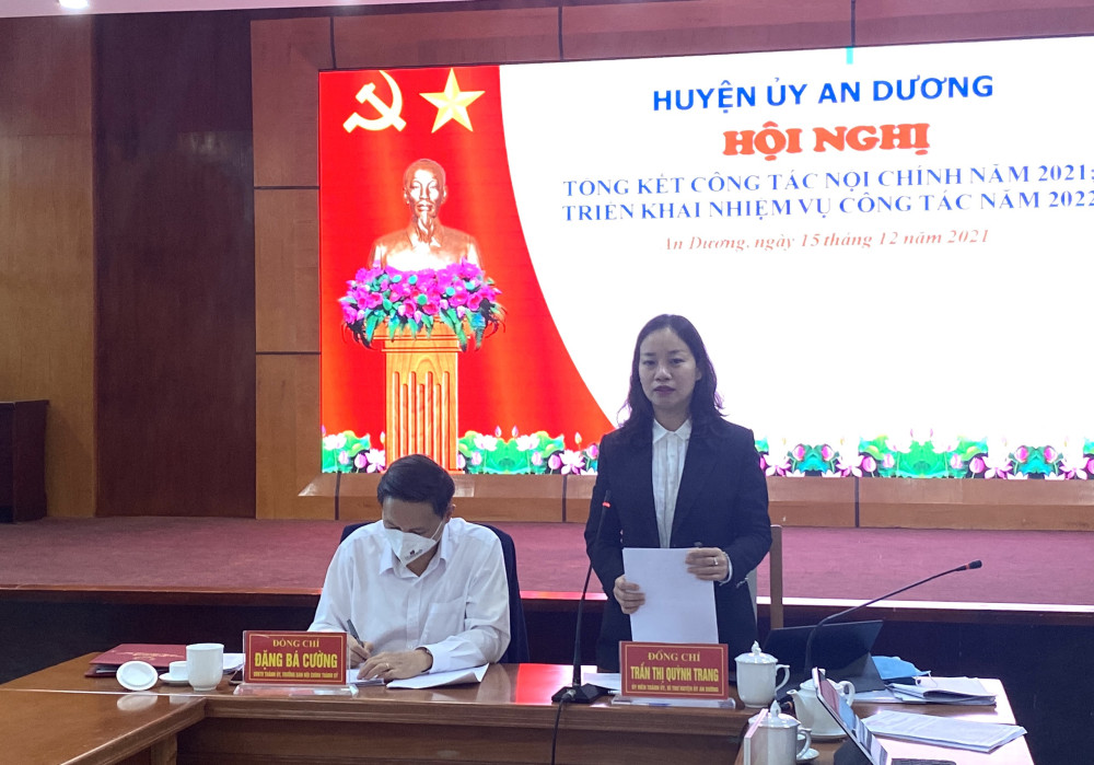 Năm 2021, Huyện ủy An Dương đã tập trung lãnh đạo, chỉ đạo toàn diện công tác nội chính, phòng chống tham nhũng gắn với thực hành tiết kiệm, chống lãng phí và phòng chống dịch bệnh COVID-19, tình hình an ninh chính trị, trật tự an toàn xã hội trên địa bàn huyện ổn định. Các cơ quan, đơn vị trong khối nội chính luôn chủ động, tích cực tham mưu cho cấp ủy, chính quyền chỉ đạo thực hiện có hiệu quả lĩnh vực công tác nội chính. Đồng thời, phối hợp chặt chẽ phát hiện, xử lý kịp thời các vụ việc nảy sinh từ cơ sở, góp phần tích cực phục vụ nhiệm vụ phát triển kinh tế, xã hội của địa phương. Hoạt động điều tra, truy tố, xét xử của các cơ quan tư pháp được thực hiện theo quy định của pháp luật. Công tác tiếp dân, giải quyết khiếu nại, tố cáo của công dân được quan tâm giải quyết kịp thời. Các lực lượng chức năng đã tăng cường tuần tra, kiểm soát nắm tình hình tại các địa bàn trọng điểm an ninh trật tự để không nảy sinh thành điểm nóng.