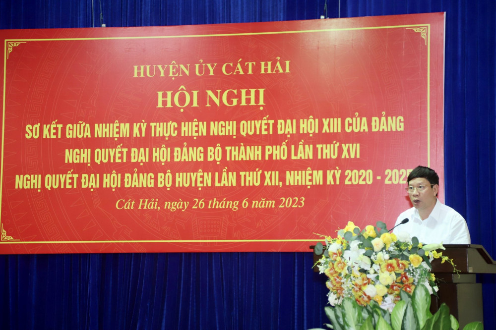 Sáng 26/6, Huyện ủy Cát Hải tổ chức Hội nghị sơ kết giữa nhiệm kỳ thực hiện Nghị quyết Đại hội 13 của Đảng, Nghị quyết Đại hội Đảng bộ thành phố lần thứ 16, Nghị quyết Đại hội Đảng bộ huyện lần thứ 12, nhiệm kỳ 2020-2025.