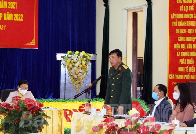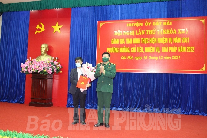 Phát biểu chỉ đạo tại hội nghị, đồng chí Nguyễn Minh Quang, Chỉ huy trưởng Bộ Chỉ huy quân sự thành phố đề nghị huyện Cát Hải tiếp tục tập trung cao cho công tác phòng, chống dịch COVID-19 theo tinh thần Nghị quyết 128 của Chính phủ; đẩy mạnh xây dựng nông thôn mới, phát triển du lịch-dịch vụ trong bối cảnh thích ứng với dịch COVID-19, tiếp tục làm tốt công tác xây dựng Đảng…