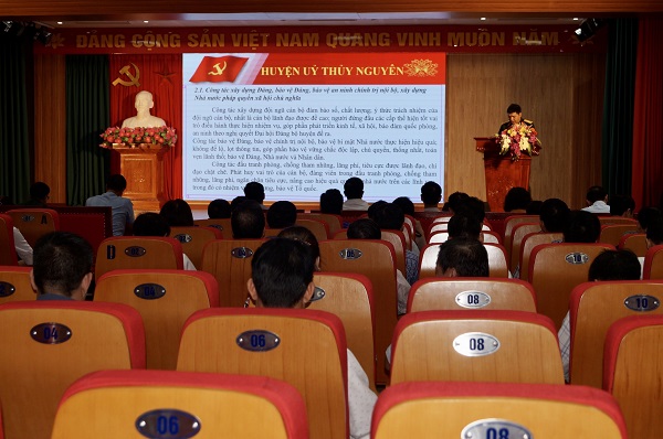 Bế mạc Hội nghị, Đồng chí Phạm Văn Thép, Ủy viên Thành ủy, Bí thư Huyện ủy cho biết, thời gian tới, huyện ủy Thủy Nguyên hướng tới mục tiêu nắm vững nhiệm vụ chiến lược xây dựng và bảo vệ tổ quốc, phát huy sức mạnh tổng hợp của khối đại đoàn kết toàn dân, của cả hệ thống chính trị; ổn định về chính trị, giàu về kinh tế, mạnh về quốc phòng an ninh; xây dựng lực lượng vũ trang huyện vững mạnh toàn diện; kết hợp chặt chẽ phát triển kinh tế xã hội gắn với củng cố quốc phòng an ninh. Giữ vững an ninh trật tự trên địa bàn.