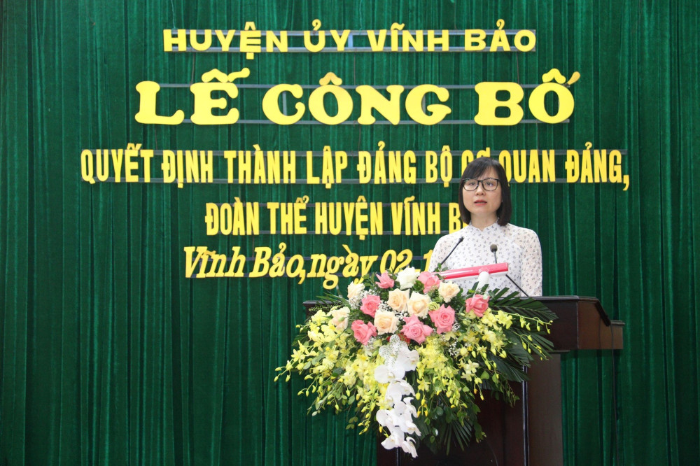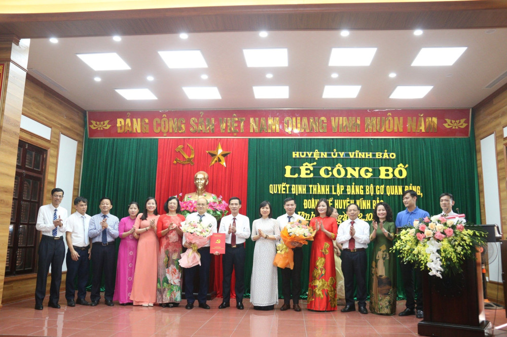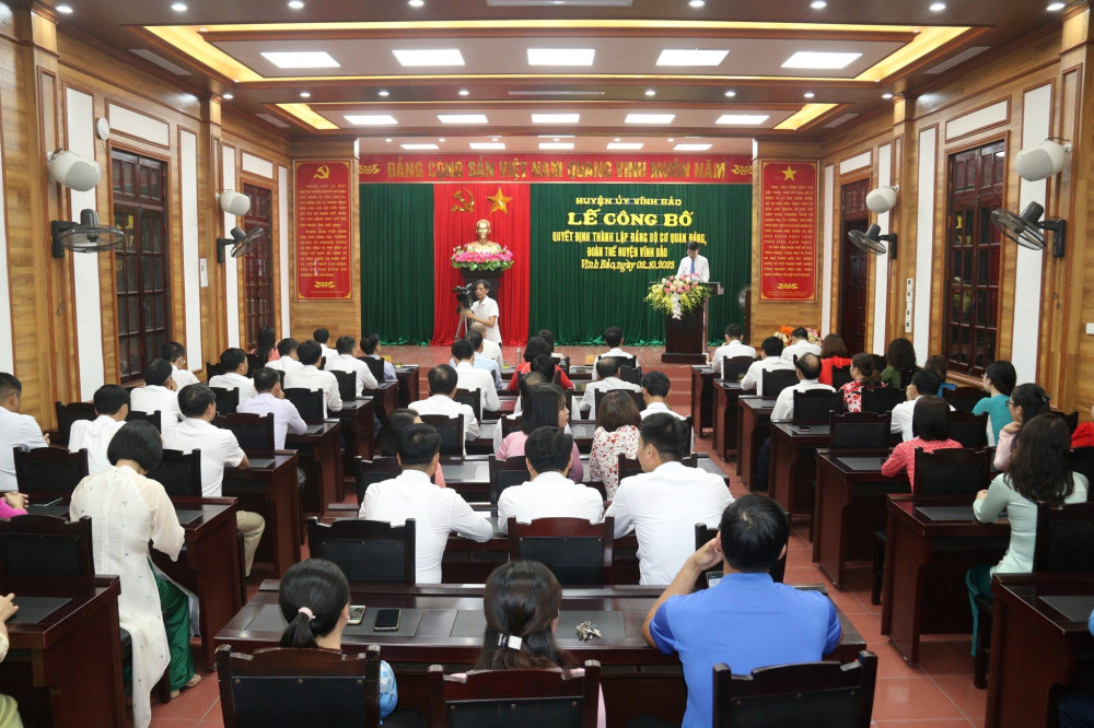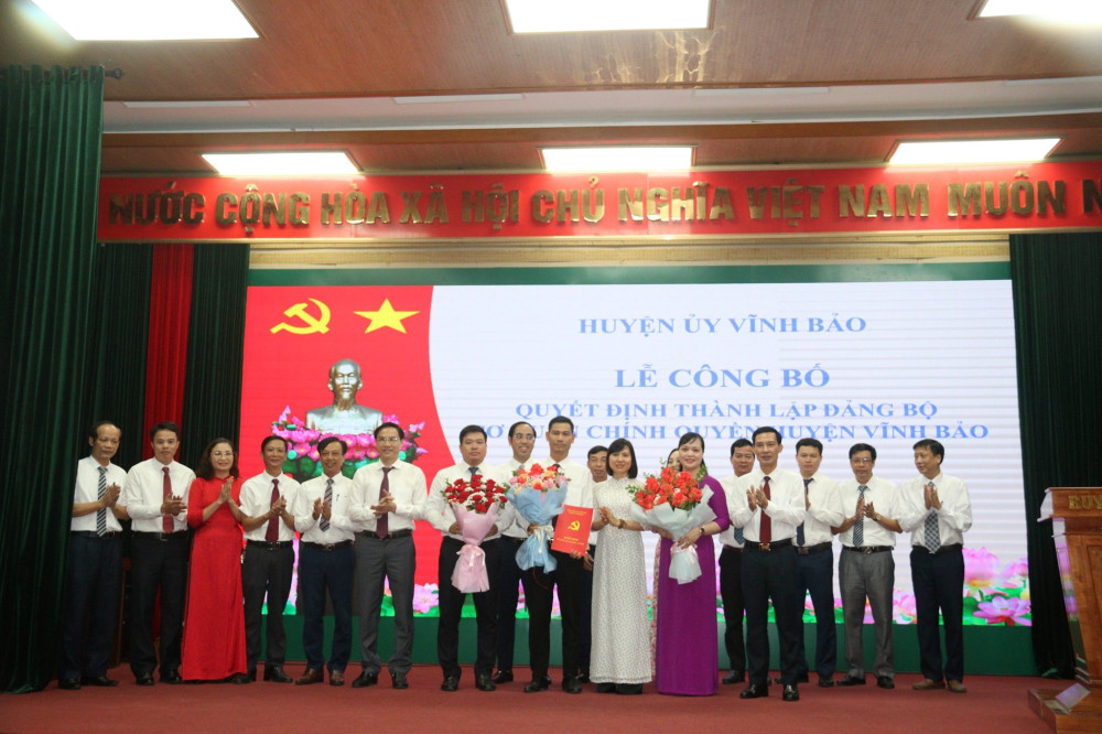 Sáng 2/10, Huyện uỷ Vĩnh Bảo tổ chức Hội nghị công bố Quyết định thành lập Đảng bộ cơ quan Đảng, Đoàn thể; Đảng bộ cơ quan chính quyền huyện.