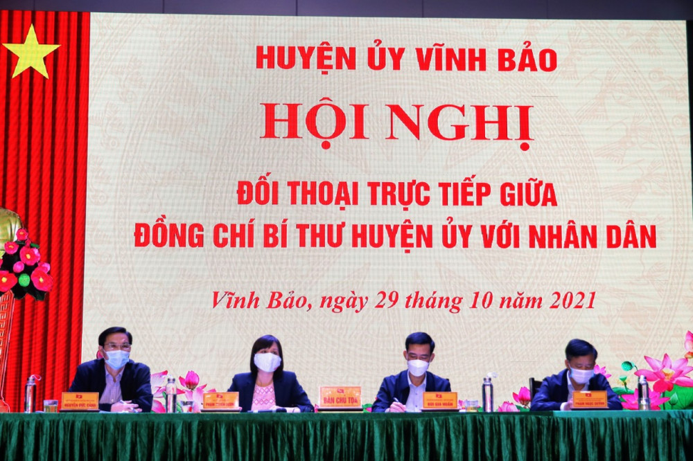 Huyện ủy Vĩnh Bảo vừa tổ chức thành công Hội nghị đối thoại trực tiếp giữa đồng chí Bí thư Huyện ủy với Nhân dân. Xác định việc đối thoại với Nhân dân là nhiệm vụ chính trị quan trọng trong giai đoạn hiện nay, thời gian qua Ban Thường vụ Huyện ủy Vĩnh Bảo đã tăng cường đổi mới sự lãnh đạo của Đảng, hoạt động của bộ máy chính quyền các cấp, tạo điều kiện thuận lợi để người dân được đóng góp ý kiến, hiến kế cho cấp ủy, chính quyền, góp phần tăng cường hiệu lực hiệu quả hoạt động, quản lý của cấp ủy, chính quyền.