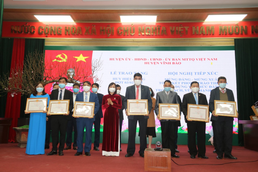 Huyện ủy Vĩnh Bảo vừa tổ chức Hội nghị tiếp xúc Mừng Đảng mừng xuân; trao tặng Huy hiệu Đảng đợt 3/2 và tổng kết Phong trào thi đua xây dựng tổ chức Đảng trong sạch vững mạnh 2021. Đồng chí Đào Trọng Đức, Ủy viên Ban Thường vụ, Trưởng Ban Tổ chức Thành ủy dự và chỉ đạo Hội nghị.
