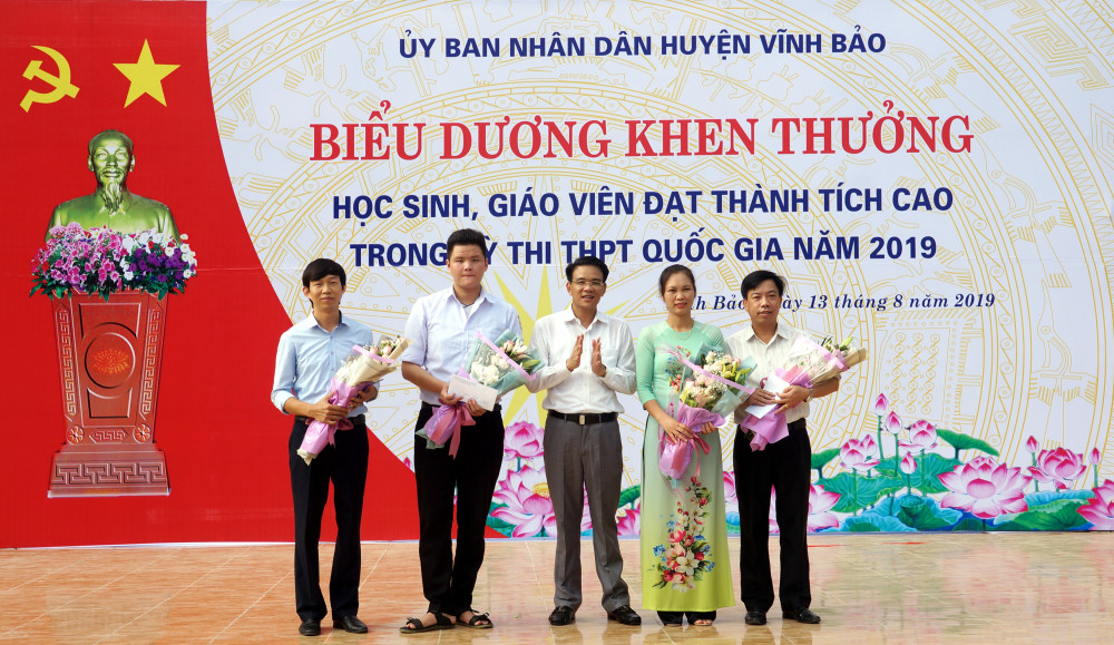 Sáng 13-8, lãnh đạo Huyện uỷ, UBND huyện Vĩnh Bảo đã tới chúc mừng, biểu dương học sinh, giáo viên có thành tích cao trong kỳ thi THPT quốc gia năm 2019.