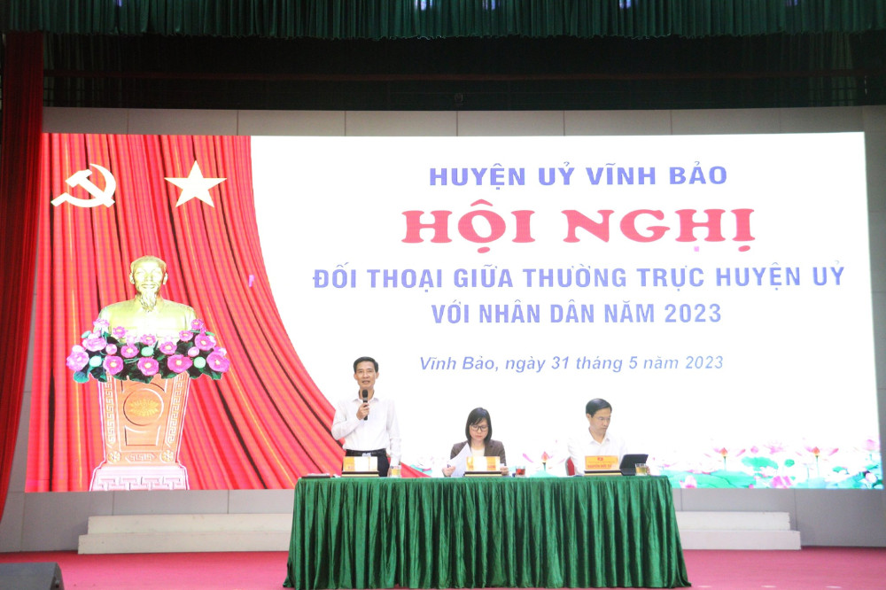 Xác định việc đối thoại với Nhân dân là nhiệm vụ chính trị quan trọng, chiều 31/5, Huyện uỷ Vĩnh Bảo tổ chức Hội nghị đối thoại giữa Thường trực Huyện ủy với Nhân dân trên địa bàn huyện.