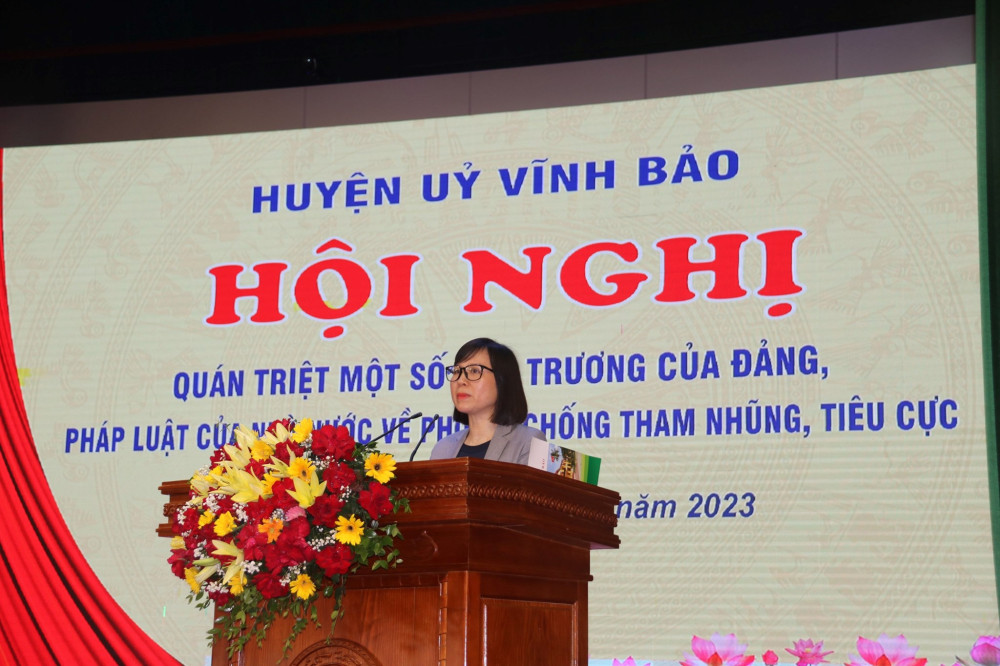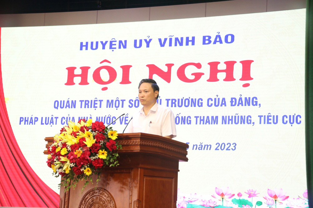 Phát biểu khai mạc Hội nghị, đồng chí Phạm Tuyên Dương, Bí thư Huyện uỷ Vĩnh Bảo khẳng định, Phòng, chống tham nhũng, lãng phí, tiêu cực là một trong những nhiệm vụ trọng tâm, quan trọng, vừa cấp bách, vừa lâu dài đối với các cấp ủy, tổ chức đảng, chính quyền, cơ quan, tổ chức trong hệ thống chính trị và cán bộ, đảng viên, nhất là người đứng đầu. Hội nghị là đợt sinh hoạt chính trị sâu rộng trong toàn Đảng bộ, hệ thống chính trị của huyện.